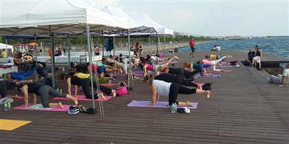 Ερχόμαστε όλοι – με το στρωματάκι μας, αν υπάρχει – στην εξέδρα «πρώην Φεγγάρι», μπροστά από το Μακεδονία Παλλάς, για να γνωρίσουμε τα διάφορα είδη της γιόγκα από σχολές της πόλης μας και να ασκηθούμε όλοι μαζί, ανακαλύπτοντας αυτό που μάς πάει, αυτό που μάς εμπνέει, αυτό που μάς φέρνει ικανοποίηση και χαρά! Φοράμε άνετα ρούχα, αντιηλιακό γιατί ο ήλιος αργεί να δύσει, φέρνουμε το νεράκι μας ή κάποιο άλλο δροσιστικό ρόφημα και αφηνόμαστε στην έμπειρη καθοδήγηση των διδασκόντων για να απολαύσουμε τη γιόγκα με την αύρα της θάλασσας αλλά και υπό σκιάν!