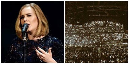 Την ίδια στιγμή τα φώτα έσβησαν και οι θεατές ύψωσαν κινητά και αναπτήρες για να φωτίσουν το στάδιο.